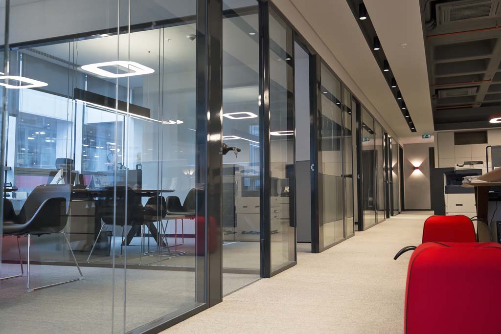 Minimum profil kullanım şıklığını, ses izolasyonu ve çift cam arası jaluzi kullanabilme imkanı ile taçlandıran bölme sistemi, tek camlı sistemde olduğu gibi cam, ahşap kapılar ve sürgü sistemler ile tam bir uyum içerisindedir.