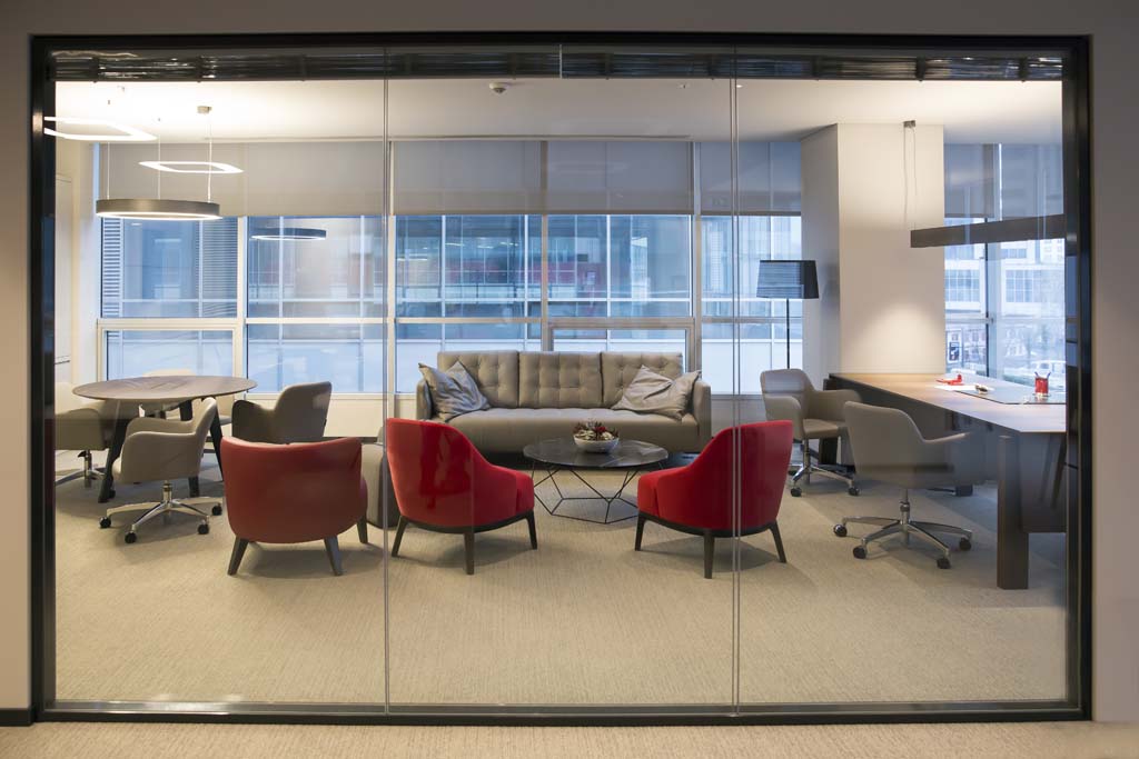 Minimum profil kullanım şıklığını, ses izolasyonu ve çift cam arası jaluzi kullanabilme imkanı ile taçlandıran bölme sistemi, tek camlı sistemde olduğu gibi cam, ahşap kapılar ve sürgü sistemler ile tam bir uyum içerisindedir.